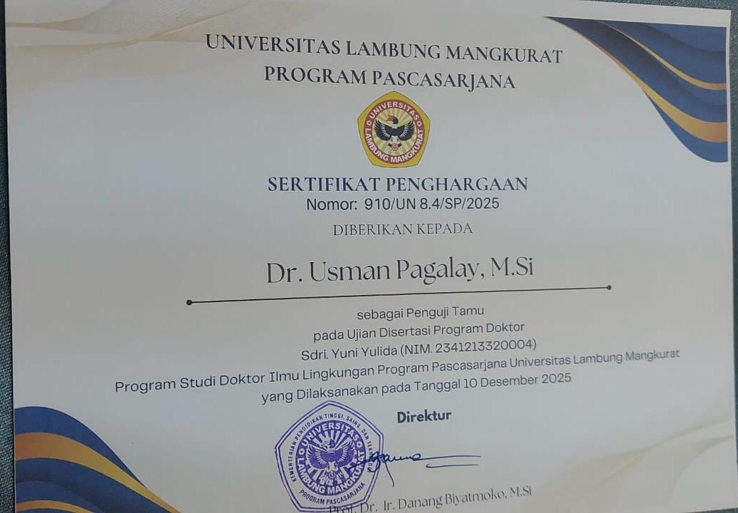 Malang, 11 Desember 2025 – Reputasi akademik dosen Fakultas Sains dan Teknologi (FST) UIN Maulana Malik Ibrahim Malang kembali mendapat pengakuan di tingkat nasional. Dr. Usman Pagalay, M.Si, dosen Program Studi Matematika UIN Malang, diundang sebagai Penguji Luar dalam Sidang Promosi Doktor di Program Studi Doktor Ilmu Lingkungan, Universitas Lambung Mangkurat.