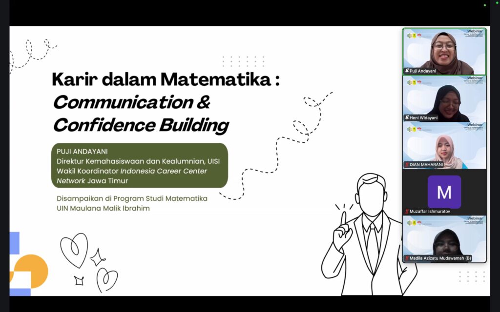 MALANG – Selama ini, jurusan Matematika sering dianggap hanya berkutat dengan angka dan rumus yang rumit. Namun, dalam seminar terbaru di UIN Maulana Malik Ibrahim, Puji Andayani, Direktur Kemahasiswaan UISI, mengungkapkan bahwa kunci kesuksesan karir lulusan Matematika justru terletak pada dua aspek yang sering diabaikan: Komunikasi dan Kepercayaan Diri.“Matematika bukan hanya soal menyelesaikan persamaan. Di dunia profesional, seorang matematikawan harus mampu menjembatani data yang rumit agar bisa dipahami oleh orang awam.”